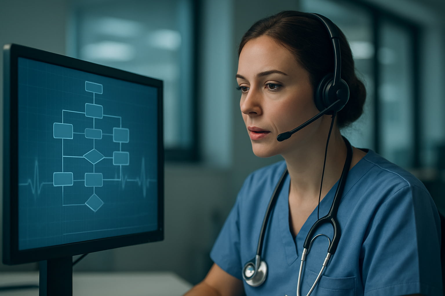 This image captures the future of triage perfectly. A nurse isn't just typing; she's interacting with a system that listens, documents, and supports her, allowing her to focus entirely on the patient. This isn't science fiction anymore—it's what effective triage looks like today.